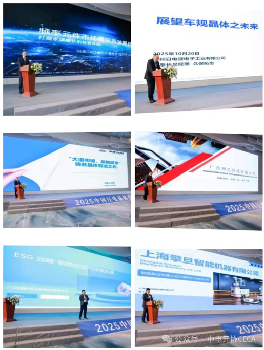 10月20日下午的专题报告会成为了分享与交流的智慧盛宴。会议围绕“石英晶体材料发展趋势”、“展望车规晶体之未来”、“明德亨公司发展历程”、“设备用视觉的展望”、“ESG战略—赋能晶振企业可持续发展”以及“智能复合机器人在元器件行业的应用”等前沿热点议题,邀请了林万兴、久保拓也、许刚、谢偲鹏、孙刚、杨子逸等多位资深专家与企业代表进行深度分享,为与会者带来了宝贵的经验分享和创新思路,展现了市场需求和行业技术发展的广阔前景。